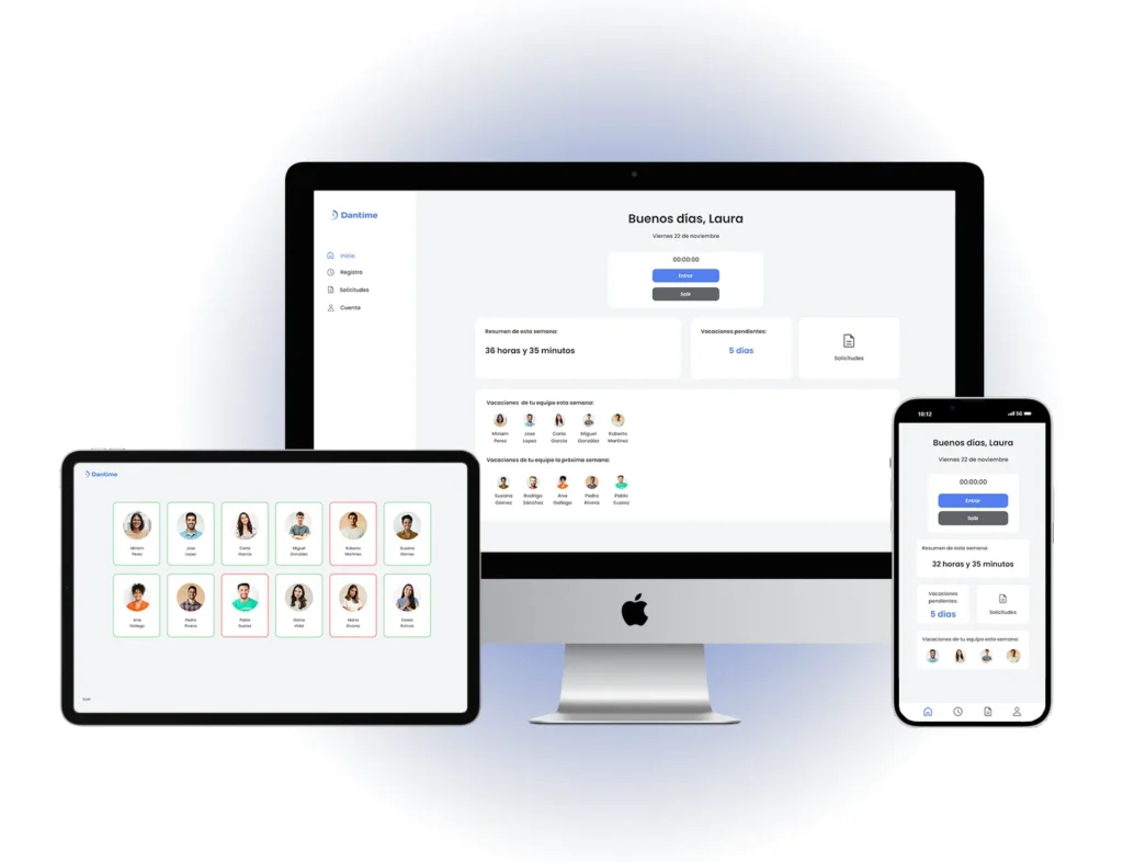 Con Dantime nuestro software de control de presencia, pueden fichar desde el móvil, desde tablet o desde el ordenador de la oficina. El programa está pensado y diseñado para todas las necesidades de las empresas, fiche desde cualquier lugar y en cualquier momento.